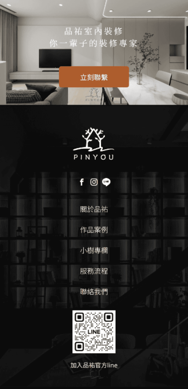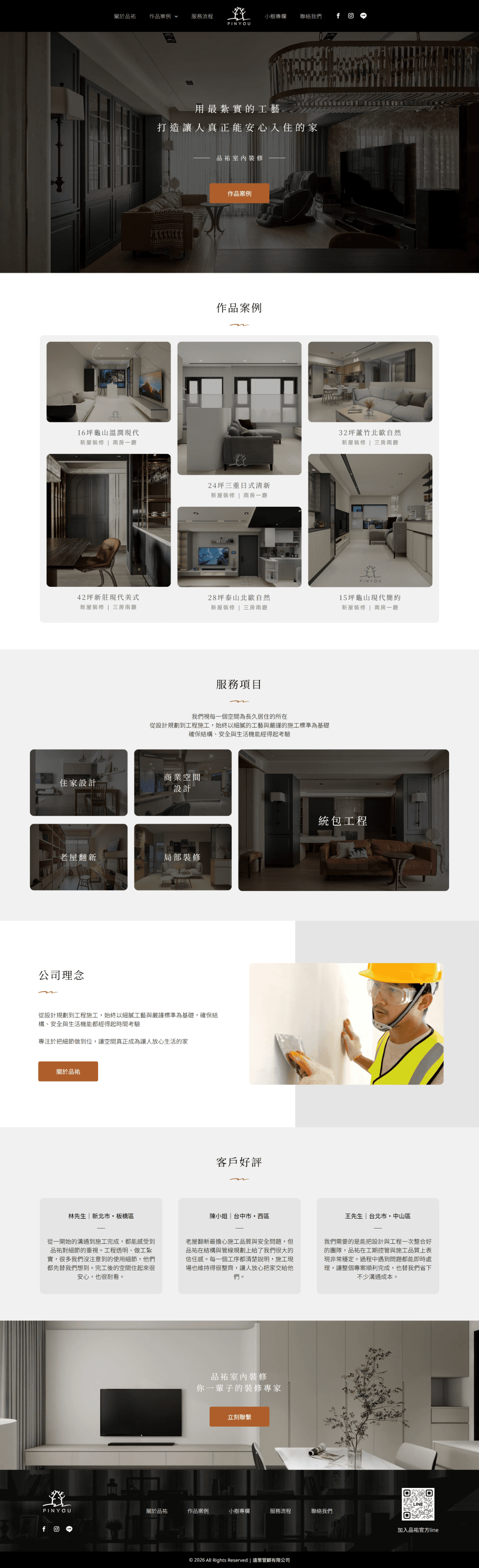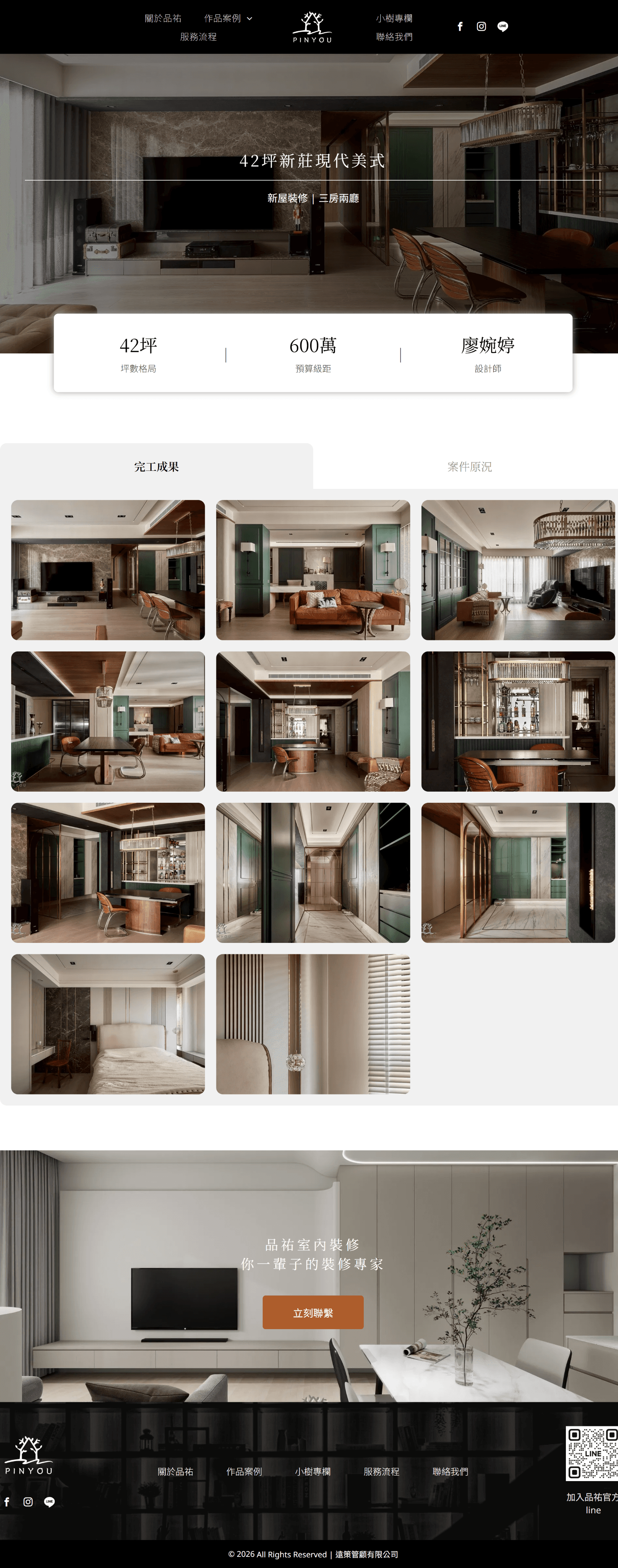 Pinyou's official website is the website I created in 2026 for an interior design client in Taiwan. The visual style uses bold black to emphasize the brand's identity, while simultaneously considering information architecture and UX to enhance the overall user experience.