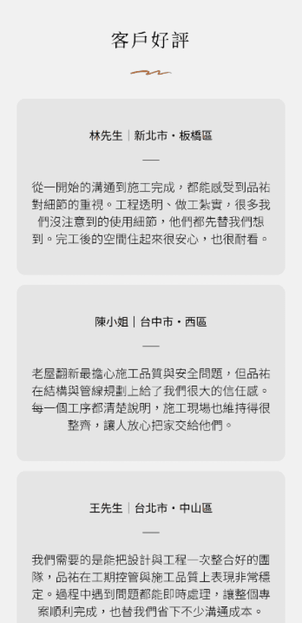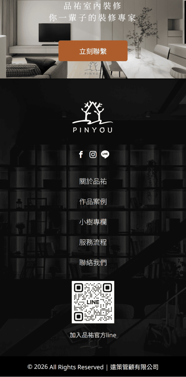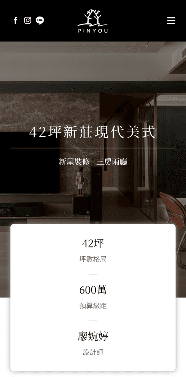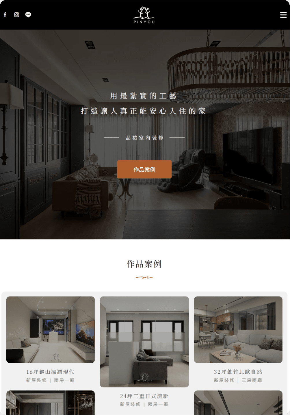 Pinyou's official website is the website I created in 2026 for an interior design client in Taiwan. The visual style uses bold black to emphasize the brand's identity, while simultaneously considering information architecture and UX to enhance the overall user experience.